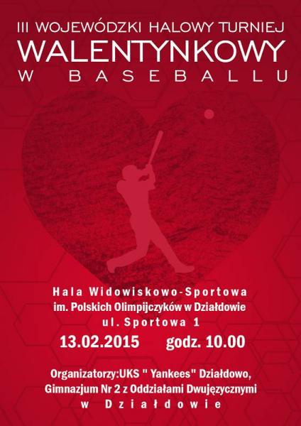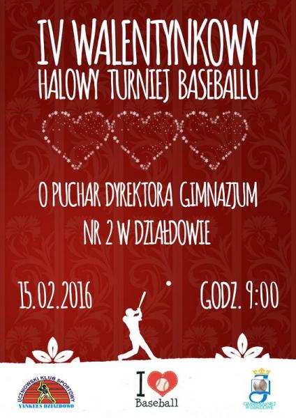 W poniedziałek 15 lutego 2016 w Hali Sportowej Gimnazjum Nr 2 odbędzie się IV WALENTYNKOWY HALOWY TURNIEJ BASEBALLU o puchar Dyrektora Szkoły i Prezesa Klubu "Yankees" w kategorii szkół podstawowych i gimnazjów. Turniej ten od lat wpisuje się w system przygotowań do sezonu letniego zarówno klubowego jak i rozgrywek szkolnych.