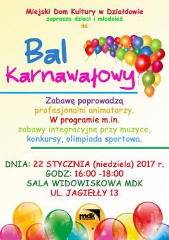 Zabawa karnawałowa w MDK - 22 stycznia 2017 r. (niedziela)