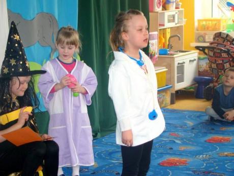 Zaproszeni goście mieli okazję obejrzeć przedstawienie teatralne w wykonaniu przedszkolaków "O zdrowiu na poważnie i na wesoło". Występy dzieci sprawiły wiele radości przybyłym gościom, były również okazją dla dzieci do wykazania się umiejętnościami aktorskimi.
