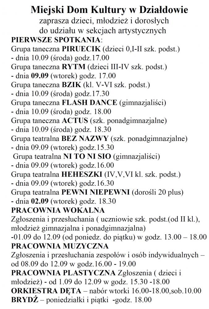 Miejski Dom Kultury w Działdowie zaprasza dzieci, młodzież i dorosłych do udziału w sekcjach artystycznych