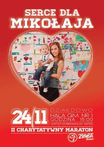 W niedzielę, 24 listopada 2013 r., w sali gimnastycznej Gimnazjum nr 1, godz. 15.00 w Działdowie odbędzie się Charytatywny Maraton Zumba(r)Fitness. Podczas maratonu zbierane będą środki dla Mikołaja Sztangi