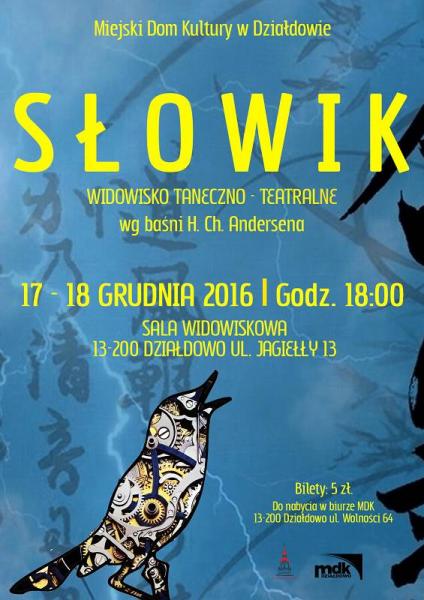 Wystąpią wszystkie grupy taneczne, aktorzy gimnazjalno-licealnej grupy teatralnej oraz po raz pierwszy sekcja bębniarska MDK, finałową piosenkę będzie wykonywał Michał Grocki. Opowieść o słowiku, który śpiewa najpiękniej na świecie, zabierze nas do dalekich Chin i odkryje piękno prawdziwych uczuć.