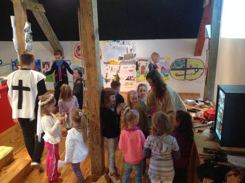 Akcja "Dzień w muzeum - Działdowo znane i nieznane" odbyła się 08.04.2016 r., w piątek. Rankiem odbyły się warsztaty dla grupy dzieci z Miejskiego Przedszkola nr 3. Przedszkolaki dowiedziały się, kim byli rycerze, czym charakteryzują się zamki. W ramach zabawy słowno-ruchowej dzieci nauczyły się krótkiej rymowanki, na koniec miały możliwość przymierzenia czapek, wianków i koszuli średniowiecznych oraz mogły pooglądać drewniane miecze. W południe zostały przeprowadzone warsztaty dla uczniów klasy 6c ze Szkoły Podstawowej nr 3 im. Bronisława Malinowskiego w Działdowie. Dzieci rozmawiały o ideale rycerza oraz o kodeksie rycerskim. Tworząc wzór współczesnego rycerza, szóstoklasiści doszli do wniosku, że rycerzem XXI w. są: wolontariusze, ludzie pomagający i broniący słabszych oraz patrioci. Uczniowie szkoły podstawowej po odbytych warsztatach zwiedzili muzeum. Pod koniec dnia miał miejsce wykład Henryka Jabłońskiego dla dorosłych. Podczas wystąpienia panowała zupełna cisza, słuchacze z zapartym tchem słuchali o historii Działdowa oraz o lokalnych aktywistach okresu międzywojennego.