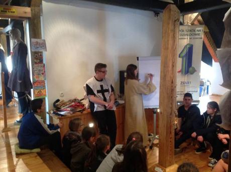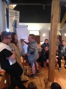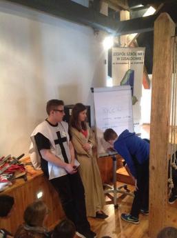 W ramach zadania rekrutacyjnego, podzielonego na 5 etapów, młodzież przeprowadziła akcję "Dzień w muzeum - Działdowo znanie i nieznane". Pierwszy etap zadania polegał na znalezieniu miejsca pamięci historycznej. Uczniowie postawili na działdowskie Interaktywne Muzeum Państwa Krzyżackiego, ponieważ jest to jedyne muzeum w Polsce o takiej tematyce, ale również, dlatego że w 2014 r. zostało laureatem 4. edycji plebiscytu "7 nowych cudów Polski", organizowanego przez redakcję National Geographic Traveler. Podczas realizacji drugiego etapu młodzież zbadała, czy wybrane miejsce pamięci znajduje się w różnych publikacjach papierowych i elektronicznych. Trzeci etap to sprawdzenie, czy wybrany obiekt jest obecny w świadomości lokalnej. By to sprawdzić młodzi w dniach 30.03-02.04.2016 r. przeprowadzili badanie - ankietę podaj dalej w: Starostwie Powiatowym, Miejskiej Bibliotece Publicznej oraz miejscowych sklepach. Ankieta podaj dalej to metoda badawcza pozwalająca na zbadanie wiedzy szerokiej grupy osób. Ankietowani odpowiadali na 3 pytania zamknięte oraz 2 pytania otwarte: