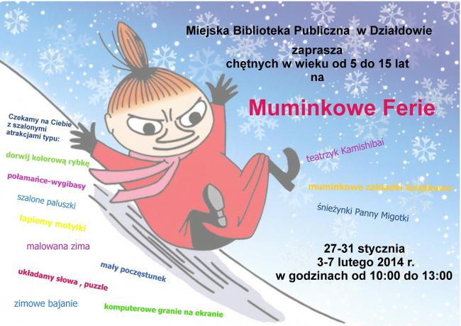 Miejska Biblioteka Publiczna w Działdowie zaprasza chętnych w wieku od 5 do 15 lat na "Muminkowe Ferie"