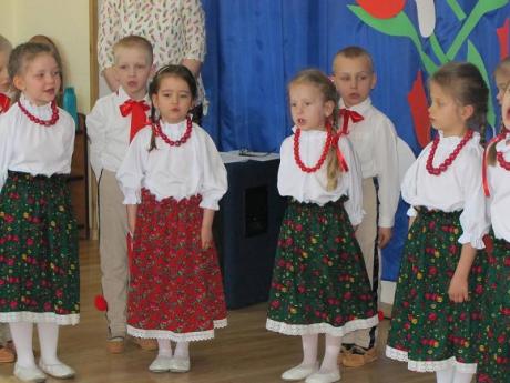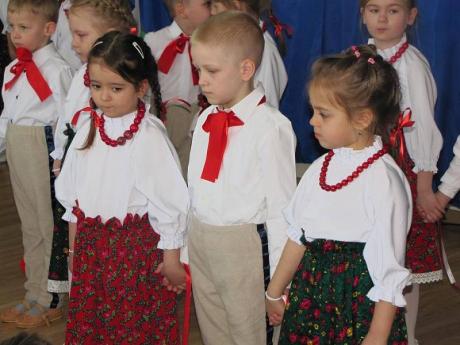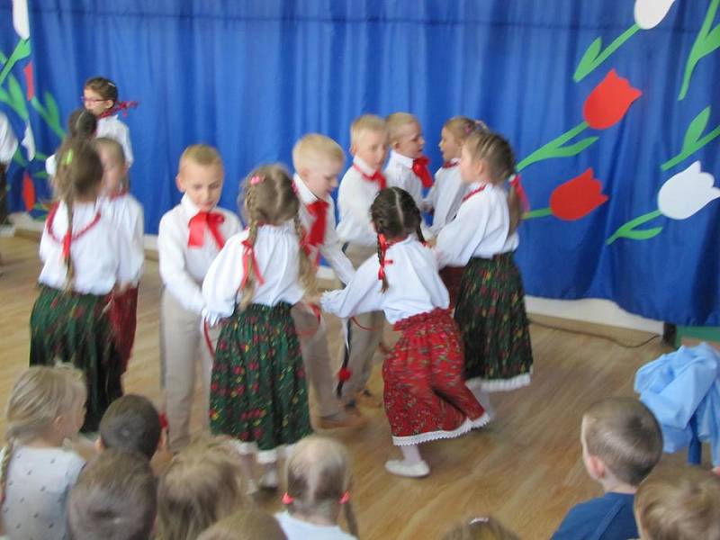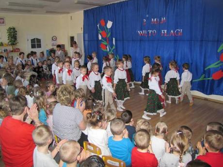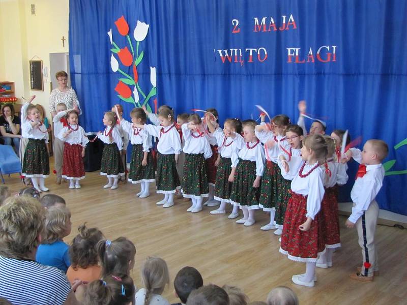Na akademii zorganizowanej przez dzieci z grupy III "B" zaprezentowano program artystyczny nawiązujący do znaczenia barw narodowych oraz odwołujący się do ducha patriotyzmu. Uroczystość uświetnił występ chóru Uniwersytetu Trzeciego Wieku. Program przygotowały nauczycielki Hanna Łabecka oraz Marzena Marchlewicz.