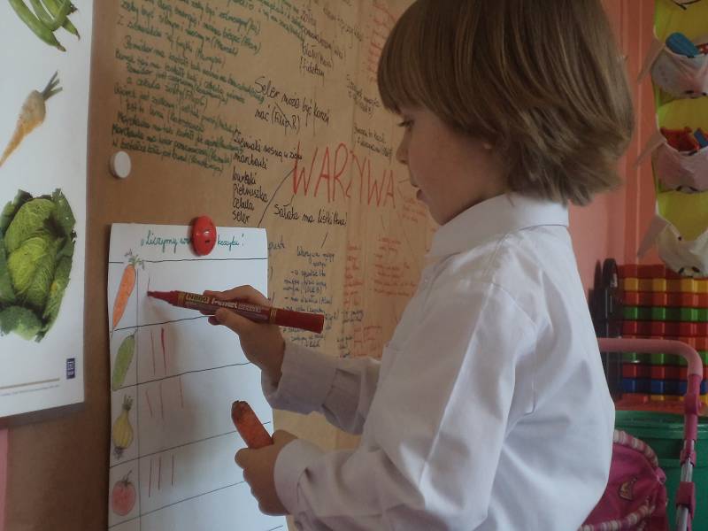- klasyfikowały warzywa według jednej cechy (koloru, wielkości, kształtu itp.);