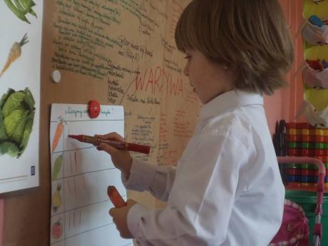 - zdobywały informacje o różnych warzywach (klasyfikacja, wartości odżywcze warzyw, etapy i warunki wzrostu roślin);