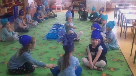 Szybko minął nam ten "niebieski dzień". Dzieci w niebiańskim nastroju poszły do swoich domów, zabierając ze sobą niebieskie czapeczki i dużo niesamowitych, niepowtarzalnych wrażeń.