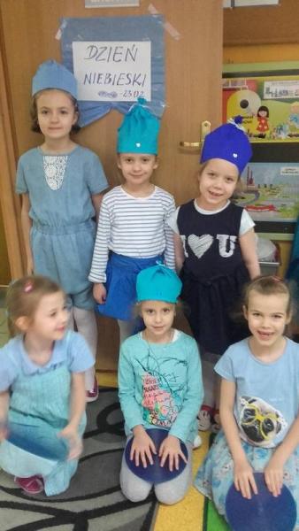 W środę 23 lutego 2017 roku w Przedszkolu Miejskim Nr 3 w Działdowie grupa IV urządziła "Niebieski dzień" (zgodnie z planem rocznym - jeden kolorowy dzień w miesiącu). W tym dniu dzieci i nauczycielki grupy przyszły do przedszkola ubrane na niebiesko. Na drzwiach widniał już napis: "DZIEŃ NIEBIESKI" zwiastujący niespodzianki i niecodzienną zabawę. Nauczycielka z pomocą dzieci wykonała czapeczki w różnych odcieniach niebieskiej barwy. Starszaki wyszukały i ułożyły na niebieskim, bibułowym dywaniku niebieskie przedmioty. W ćwiczeniach porannych wykorzystano niebieski sprzęt: krążki, obręcze, pałeczki, szarfy, woreczki.