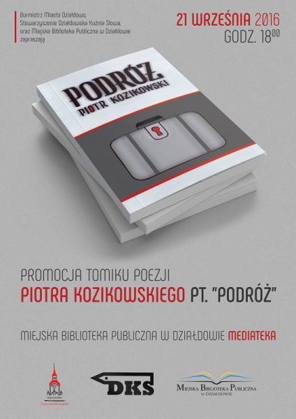 Miejska Biblioteka Publiczna w Działdowie zaprasza na promocję tomiku poezji Piotra Kozikowskiego, członka Stowarzyszenia Działdowska Kuźnia Słowa. Spotkanie odbędzie się 21 września o godz. 18.00 w Bibliotece (dział: mediateka).