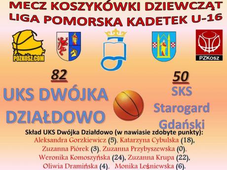 W niedzielę 12.03.2017 r. w Starogardzie Gdańskim odbył się mecz przedostatniej kolejki Ligi Pomorskiej kadetek U-16, w którym uczestniczyły koszykarki UKS Dwójka Działdowo. Jednocześnie był to ostatni mecz wyjazdowy naszych koszykarek w kampanii 2016/2017.