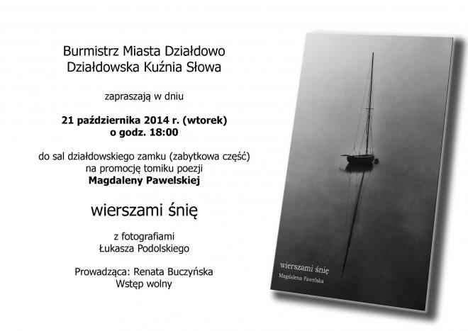 Burmistrz Miasta Działdowo, Działdowska Kuźnia Słowa zapraszają na promocję tomiku poezji Magdaleny Pawelskiej "Wierszami śnię" (21 października 2014 r., godz. 18.00, sale zamkowe)