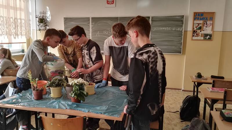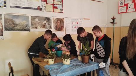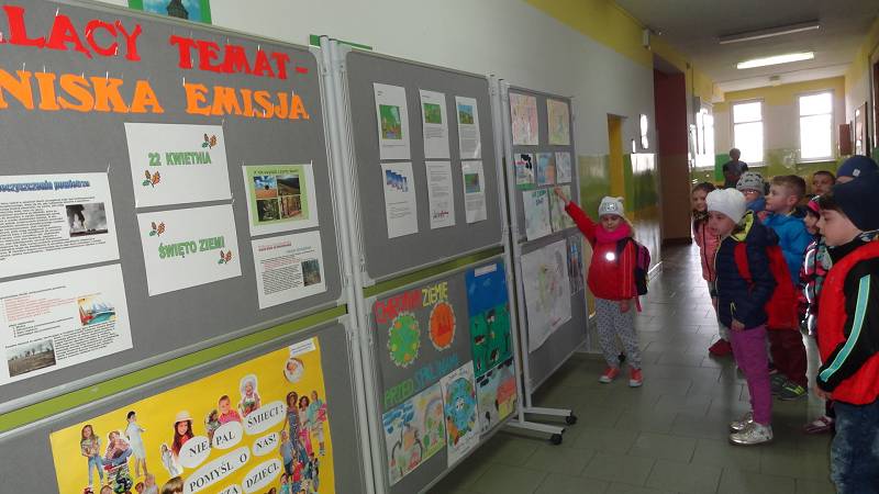 Nad losem Ziemi pochylili się również starsi uczniowie SP 4. Klasa 6a postanowiła zadbać o wystrój niektórych sal i z zapałem przesadzała rośliny doniczkowe. Na holu szkoły zorganizowano wystawę plakatów okolicznościowych, które wykonano w różnych technikach z wykorzystaniem odpadów. Z części informacyjnej można było się dowiedzieć, czym jest niska emisja, jakie negatywne skutki powoduje oraz jakie działania ją ograniczają.
