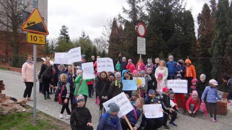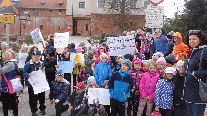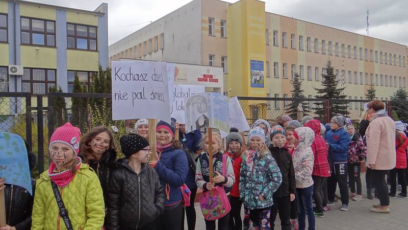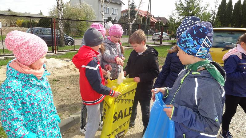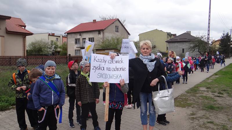 Uczniowie klas pierwszych i drugich wraz z opiekunami wzięli udział w happeningu ekologicznym. Wznosząc okrzyki w obronie planety maszerowali ulicami miasta i rozdawali mieszkańcom Działdowa stosowne ulotki. Pozostałe klasy nauczania zintegrowanego również postawiły na działania w plenerze. Pamiętając o segregacji śmieci zabrały się od sprzątania przyszkolnych terenów.