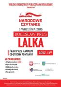Miejska Biblioteka Publiczna w Działdowie zaprasza na akcję Narodowe Czytanie "Lalka" Bolesława Prusa, które odbędzie się 5 września br. w godzinach 11.00-13.00 w parku przy Ratuszu.