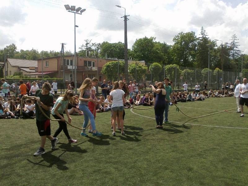 Jako główny punkt pikniku promującego Igrzyska w Rio 2016 rozegrano mecz przedszkolaków /5-6 lat/ w piłkę nożną POLSKA - BRAZYLIA zakończony wygraną Polski 1:0 (upominki dla maluchów przekazał Polski Związek Piłki Nożnej). Gimnazjaliści co roku na pikniku "walczą" o prymat w przeciąganiu liny. Tak też było i teraz - zmagania klas przyciągnęły uwagę nie tylko uczestników. W roli sędziego wystąpił nasz gość Zenon Licznerski.
