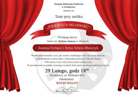 Miejska Biblioteka Publiczna w Działdowie zaprasza na Teatr przy stoliku pt. "Pierwsza młodość".