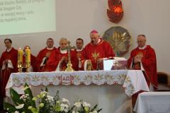 Uroczystość rozpoczęła się punktualnie o godzinie dwunastej w południe. Jej gospodarzem był proboszcz Parafii Świętej Katarzyny Aleksandryjskiej i Błogosławionych Arcybiskupa Antoniego Juliana Nowowiejskiego oraz Biskupa Leona Wetmańskiego, ksiądz kanonik Marian Ofiara. W uroczystej, koncelebrowanej Mszy Świętej, wzięli udział liczni przedstawiciele duchowieństwa z Biskupem Andrzejem Suskim na czele.