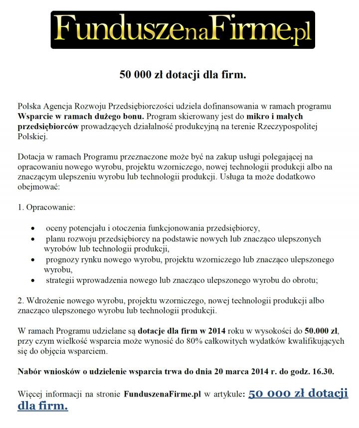 Polska Agencja Rozwoju Przedsiębiorczości udziela dofinansowania w ramach programu Wsparcie w ramach dużego bonu