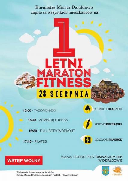 Burmistrz Miasta Działdowo zaprasza na drugi trening sportowy organizowany w ramach I Letniego Maratonu Fitness. Zapraszamy już 28 sierpnia, godz. 15.00.