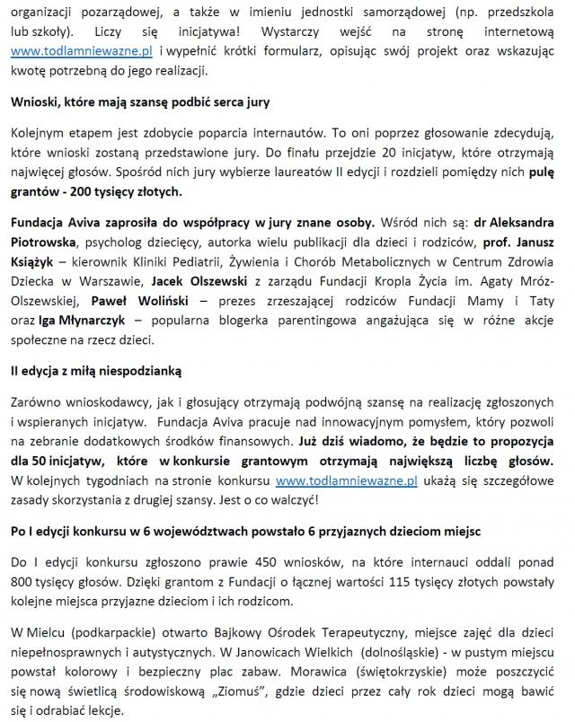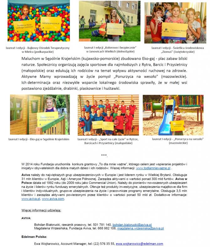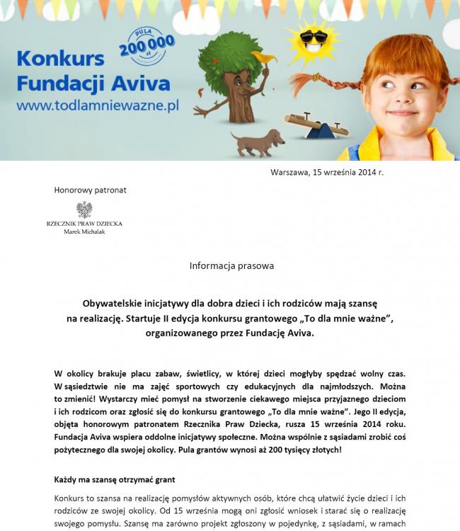 Obywatelskie inicjatywy dla dobra dzieci i ich rodziców mają szansę na realizację. Startuje II edycja konkursu grantowego "To dla mnie ważne", organizowanego przez Fundację Aviva