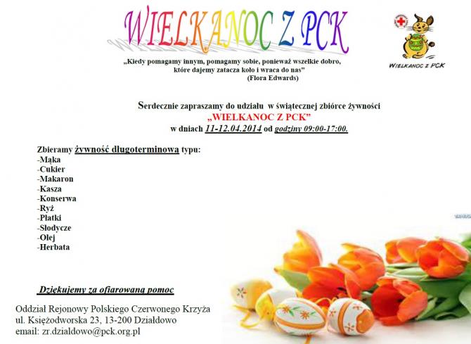 Serdecznie zapraszamy do udziału w świątecznej zbiórce żywności "WIELKANOC Z PCK"