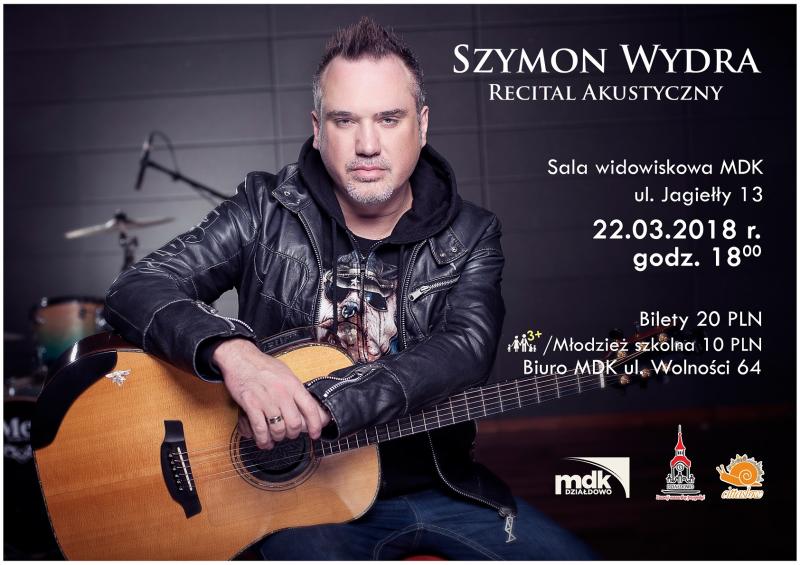 W ramach imprezy ROCK WIOSNA 2018 zapraszamy na recital akustyczny wokalisty i kompozytora zespołu Carpe Diem - Szymona Wydry. Wystąpi on w duecie z gitarzystą Zbigniewem Suskim.Koncert odbędzie się 22 marca w sali widowiskowej Miejskiego Domu Kultury w Działdowie (ul. Jagiełły 13) o godz. 18:00.