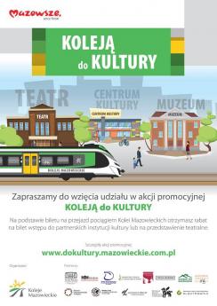 Zapraszamy do wzięcia udziału w akcji promocyjnej "Koleją do Kultury". Na podstawie biletu na przejazd pociągiem Kolei Mazowieckich można uzyskać wysokie rabaty w jednej z partnerskich instytucji kultury: