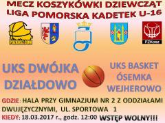 Już w najbliższą sobotę 18.03.2017 r. o godzinie 12.00 w hali przy Gimnazjum nr 2 w odbędzie ostatni mecz działdowianek w ramach Ligi Pomorskiej kadetek U-16. Rywalkami koszykarek Dwójki będą zawodniczki z Wejherowa.