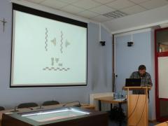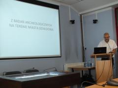 Pan Adam Mackiewicz opowiadał o nadzorach i badaniach archeologicznych prowadzonych na terenie miasta Działdowa. Ciekawostką była możliwość zobaczenia w gablocie ekspozycyjnej (która stała na soli konferencyjnej podczas spotkania) zabytków wykopanych w 2010 r. przy okazji badań archeologicznych prowadzonych przez Pana Mackiewicza.
