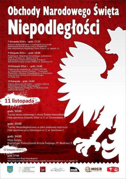 Burmistrz Miasta Działdowa zaprasza mieszkańców miasta do udziału w wydarzeniach organizowanych z okazji Narodowego Święta Niepodległości.