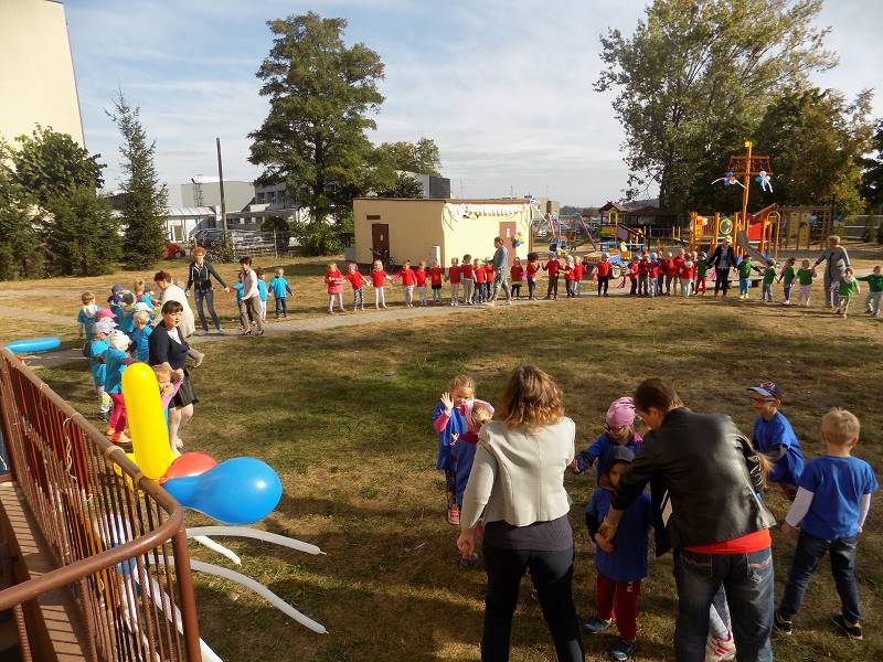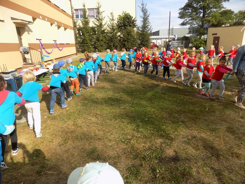 Z tej okazji pani dyrektor Małgorzata Sochocka złożyła najserdeczniejsze życzenia wszystkim przedszkolakom. Ten wyjątkowy dzień stał się wspaniałą okazją do radości i wspólnej zabawy na boisku przedszkolnym. Poza śpiewem i tańcami, dzieci mogły brać udział w konkursach i zabawach integracyjnych. Po wspólnej zabawie czekał na dzieci słodki poczęstunek.