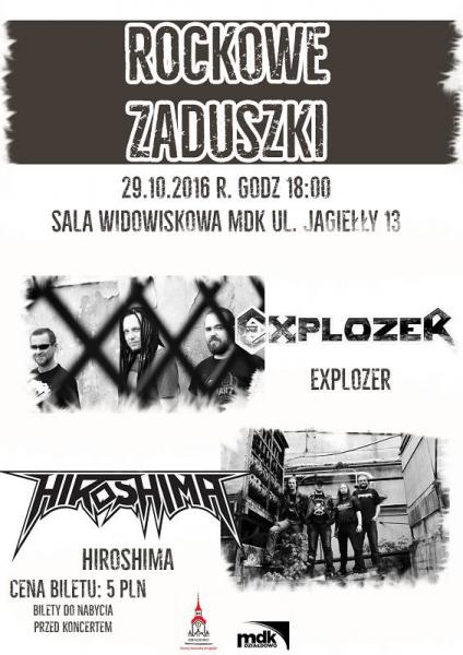 Informujemy, że z powodów niezależnych od MDK, w koncercie pn. ROCKOWE ZADUSZKI nie wystąpi, awizowany uprzednio zespół Berserker z Litwy. W zamian wystąpi pochodzący z Trójmiasta, zespół EXPLOZER.